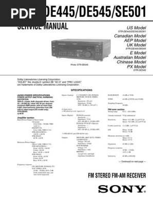 Hfe Sony Str De445 545 Se501 Service Pdf Audio Engineering