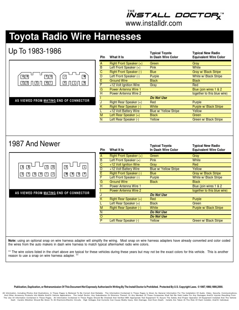 The Install Doctor Radio Wire Harness And Colors Toyota